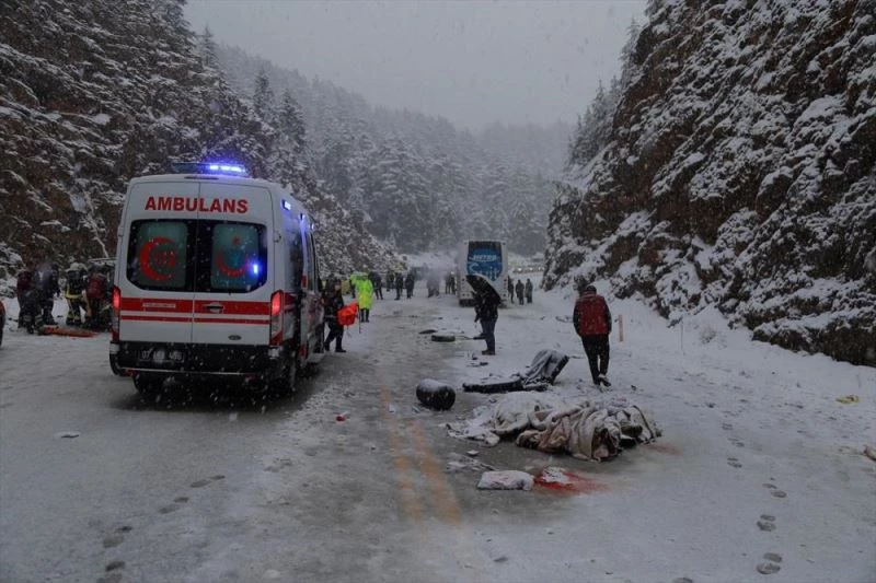 Yoğun kar yağışının devam ettiği Antalya-Konya kara yolu Alacabel mevkisinde sürücülerinin kimlikleri henüz belirlenemeyen 38 LJ 203 plakalı hafif ticari araç ile Metro turizm firmasına ait 34 UYA 82 plakalı yolcu otobüsü çarpıştı.