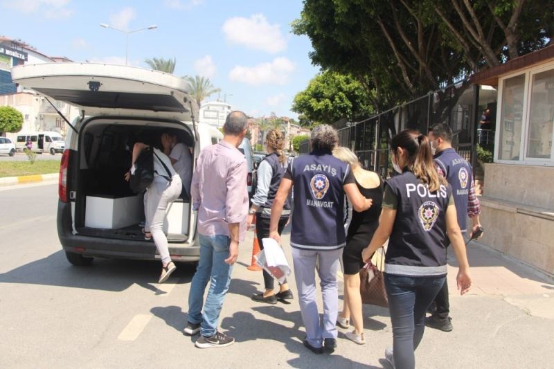 Antalya’nın Manavgat ilçesinde Kavaklı ve Salkım Evleri Mahallesinde bulunan iki ayrı adrese R.T. isimli şahsın yabancı uyruklu kadınları getirerek fuhuş yaptırıldığı bilgisi elde edilmesi üzerine Asayiş Büro Amirliği görevlilerince yapılan çalışmalar sonucunda, eş zamanlı olarak üç ayrı adrese operasyon düzenlendi. Operasyonda R.T. , Y.G. ile yabancı uyruklu M.U, C.N. yakalandı.