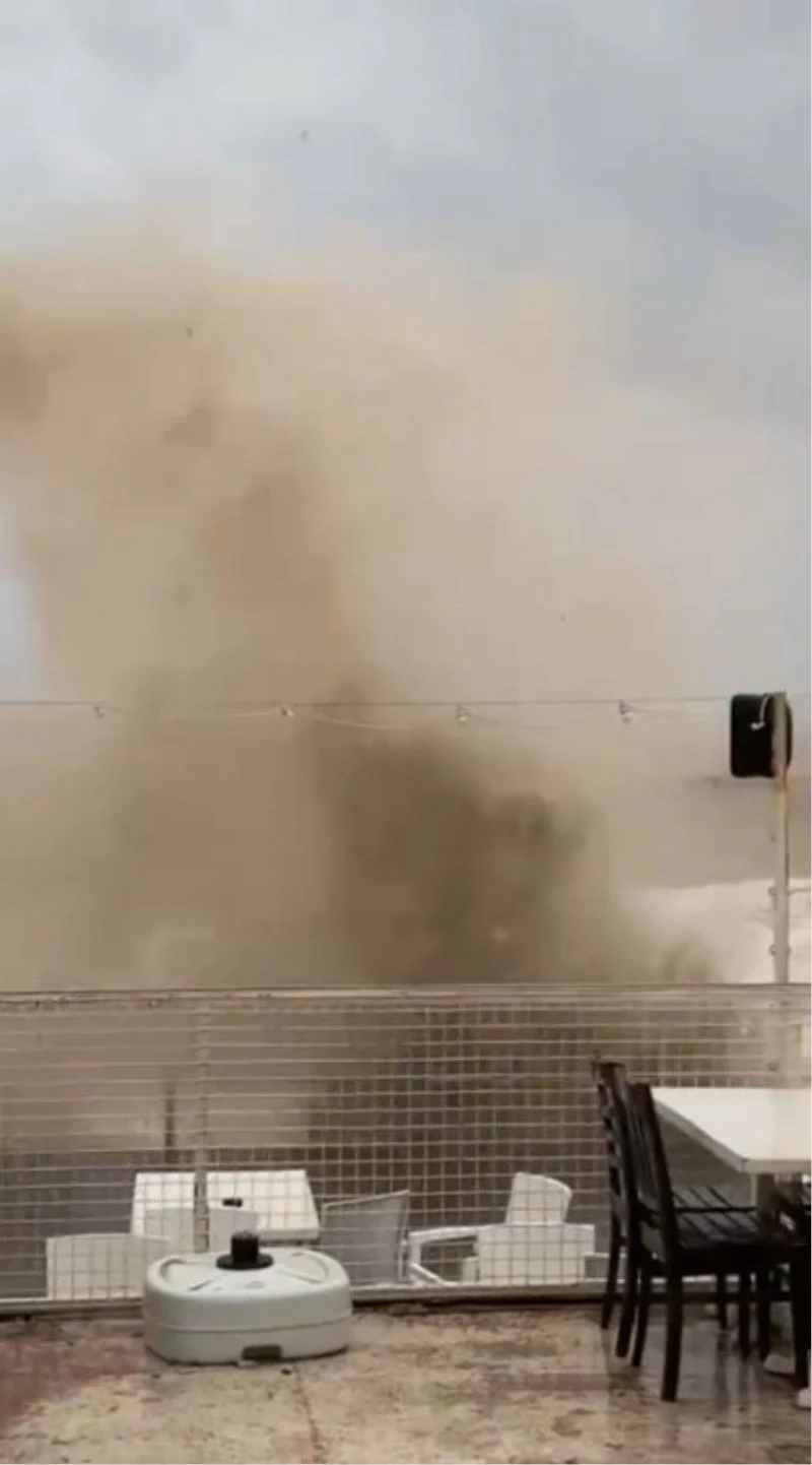 Farklı bir görüntüde ise kahverengiye dönmüş sahildeki dalgaları görüntülemek isteyen bir vatandaş dalgaların azizliğine uğradı. Cep telefonuyla kayda giren vatandaş, bir anda kıyıya çarpıp caddeye ulaşan dalgaların kendisine çarpmasıyla neye uğradığını şaşırdı.