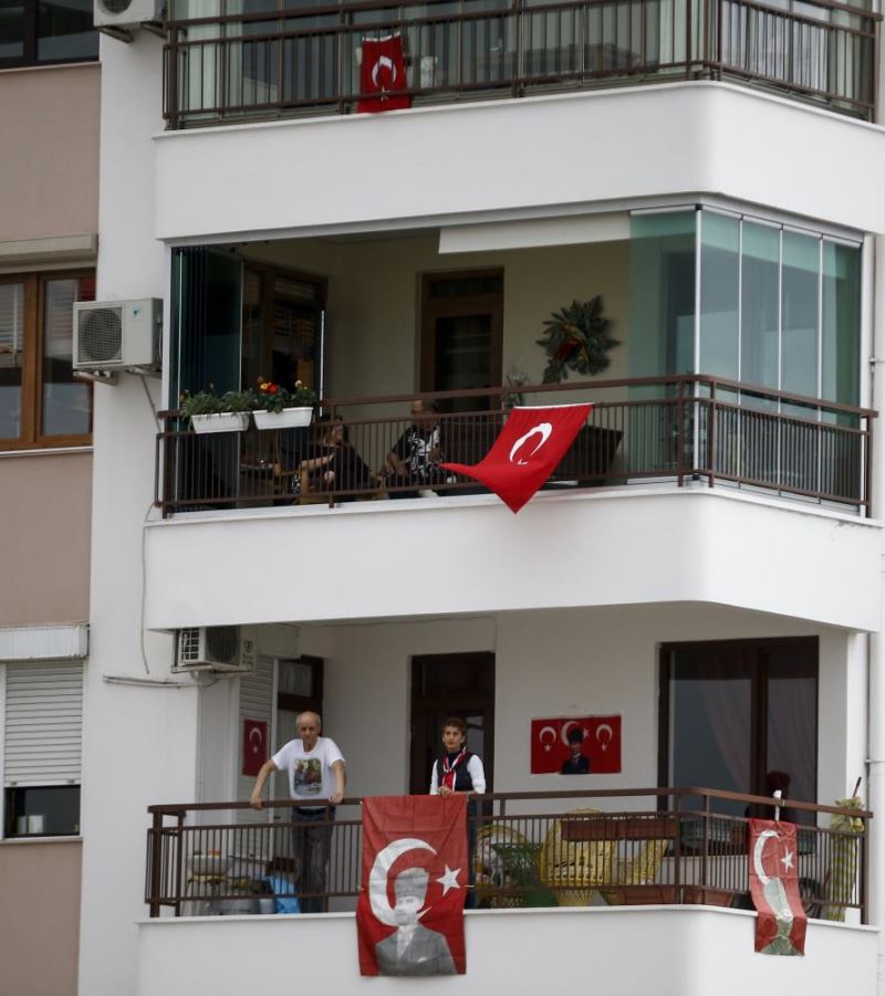 Burada Atatürk'ün sevdigi sarkilar ile 23 Nisan sarki ve marslarinin yani sira popüler sarkilari seslendiren Nugay'a komsulari da evlerinin balkon ve pencerelerinden eslik etti.