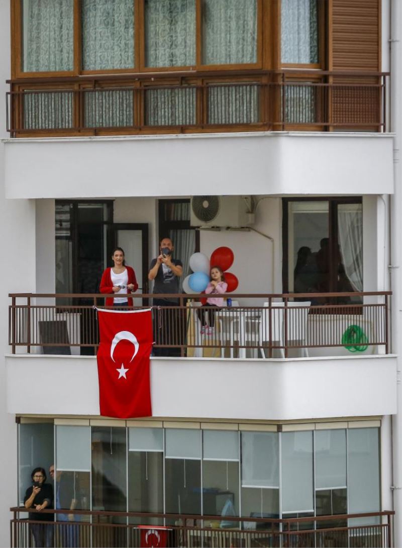 Muratpasa ilçesinde yasayan 40 yasindaki Nugay, yeni tip koronavirüs (Kovid-19) tedbirleri kapsaminda 23 Nisan Ulusal Egemenlik ve Çocuk Bayrami'nin bu yil tören alanlari ve meydanlarda kutlanamamasi nedeniyle komsulari için terasinda konser vermeye karar verdi.