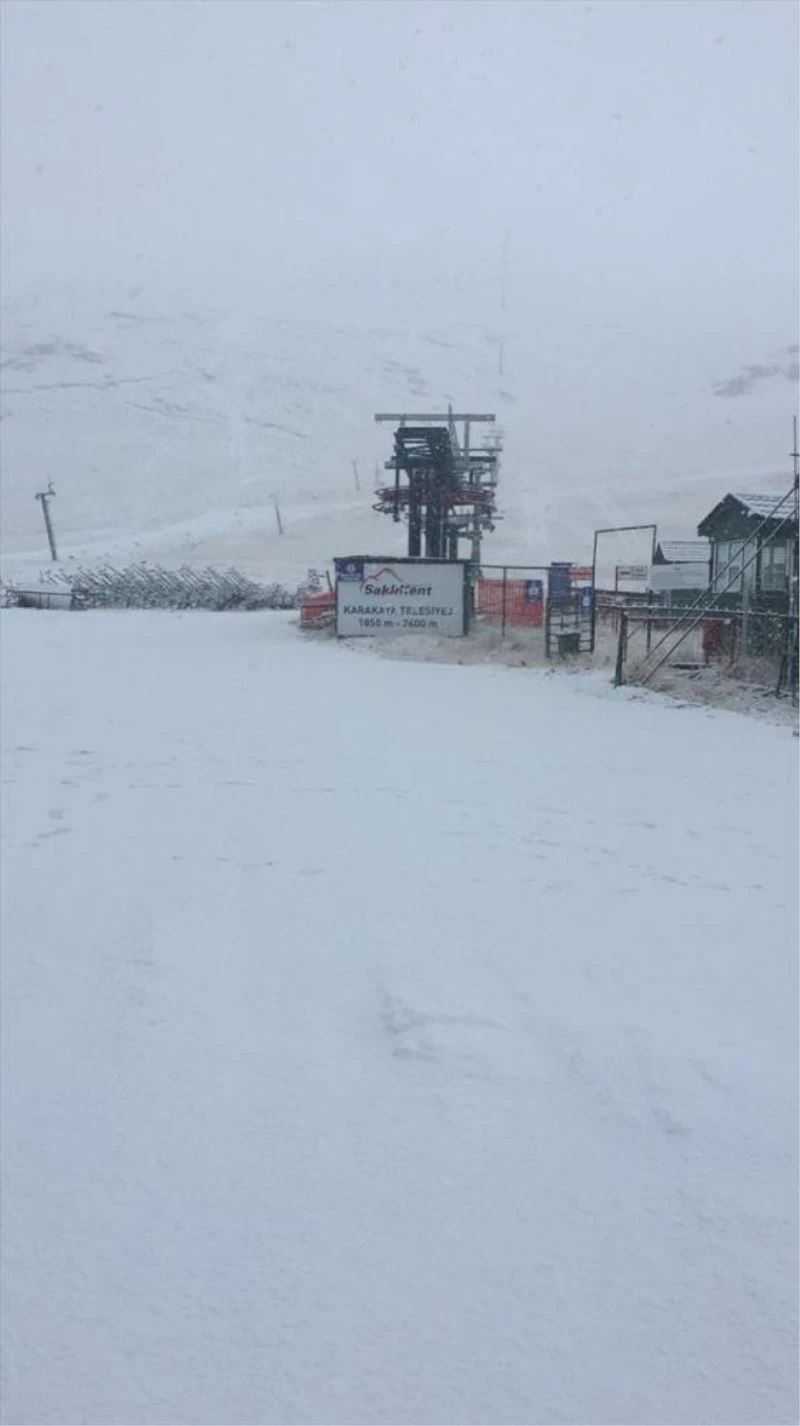 Sabah erken saatlerde etkisini gösteren karla birlikte kayak merkezi beyaz örtüyle kaplandi.