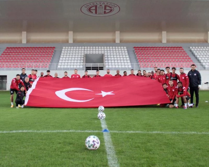 Futbolcular, 29 Ekim Cumhuriyet Bayrami dolayisiyla sahada Türk bayragi açarak, fotograf çektirdi.
