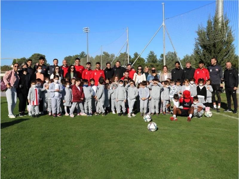 Öte yandan, antrenman öncesi özel bir anaokulunun öğrencileri, öğretmenleriyle kırmızı-beyazlılarının antrenmanını izledi.