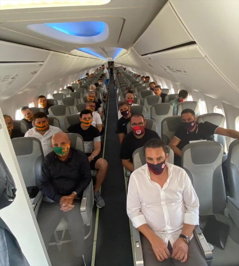 Takim yöneticileri, futbolcular ve teknik ekip, uçakta yeni tip koronaviris (Kovid-19) tedbirleri çerçevesinde maskeli ve sosyal mesafeye kurallarina dikkat ederek yolculuk yapiyor.