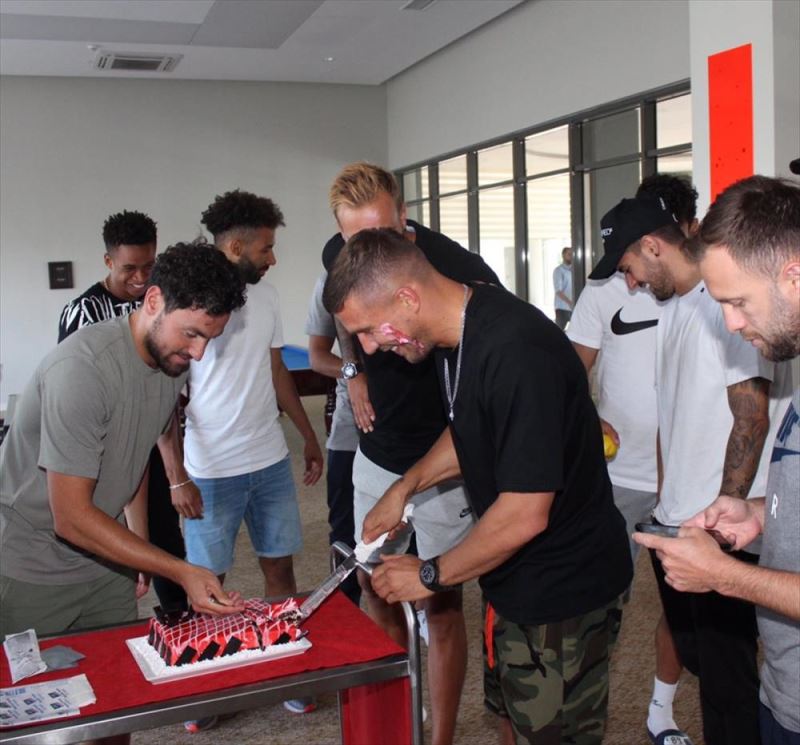 Atilla Vehbi Konuk Tesisleri'nde bugünkü antrenman öncesi 35 yasina giren Alman golcü futbolcu Podolski için dogum günü kutlamasi yapildi.