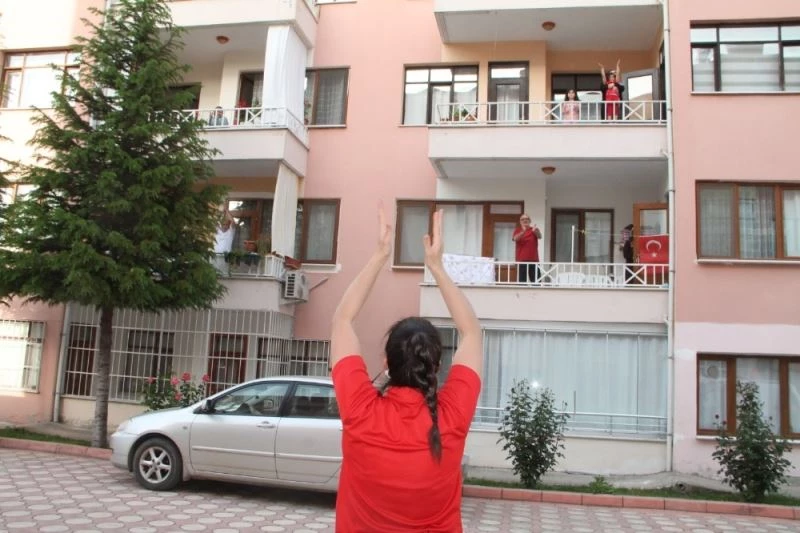 Amasya’da antrenör sokakta, vatandaşlar balkonda spor yaptı.