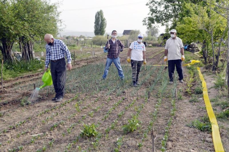 Kütahya’nın Tavşanlı ilçesinde iki antrenör, korona virüs sürecinde kiraladıkları bahçe içerisinde sebze üreterek günlerini değerlendiriyor.