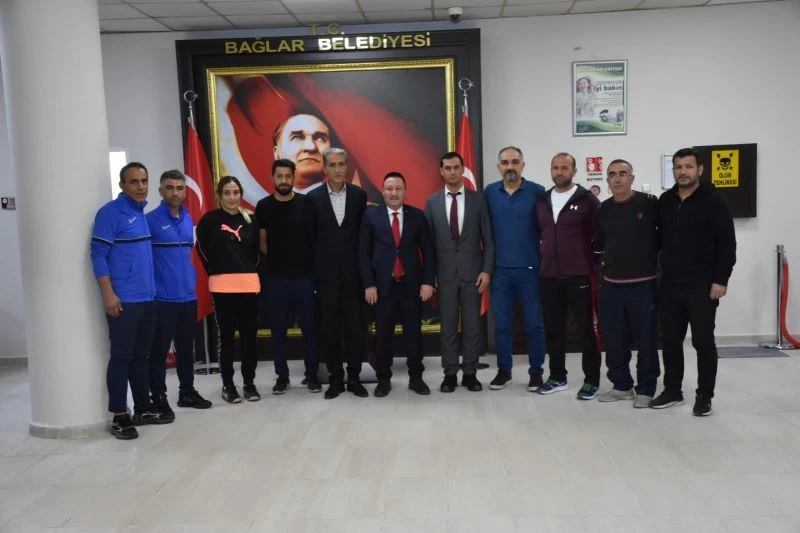 Bağlar Belediyespor Kulüp Başkanı Mehmet Sait Yıldız ve branş antrenörleri, Bağlar Belediye Başkanı Hüseyin Beyoğlu’nu ziyaret ederek sezona hazırlanmaları için sağladıkları destek için teşekkür etti.