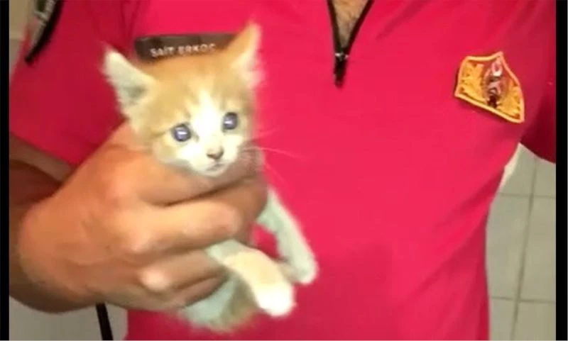 Yavru kedinin kurtarılmasına sevinen vatandaşlar da itfaiye ekiplerine duyarlılığı için teşekkürlerini iletti.