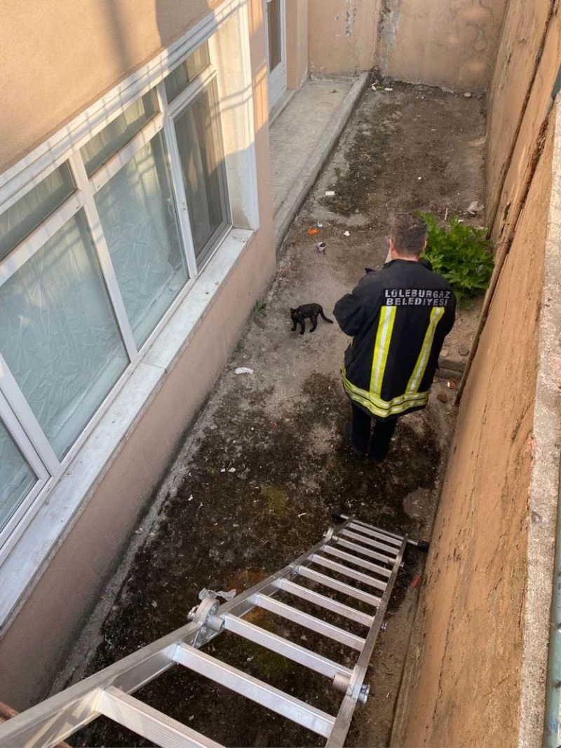 Alınan bilgiye göre, Lüleburgaz ilçesi Yeni Mahalle İstasyon Caddesi’nde bir apartmanın boşluğundan kedi sesini duyan apartman sakinleri, durumu itfaiye ekiplerine bildirdi. Haber verilmesi üzerine bölgeye gelen itfaiye ekipleri kediyi mahsur kaldığı yerden kurtardı. Lüleburgaz İtfaiyesi ekiplerce kurtarılan kedi sokağa bırakıldı.