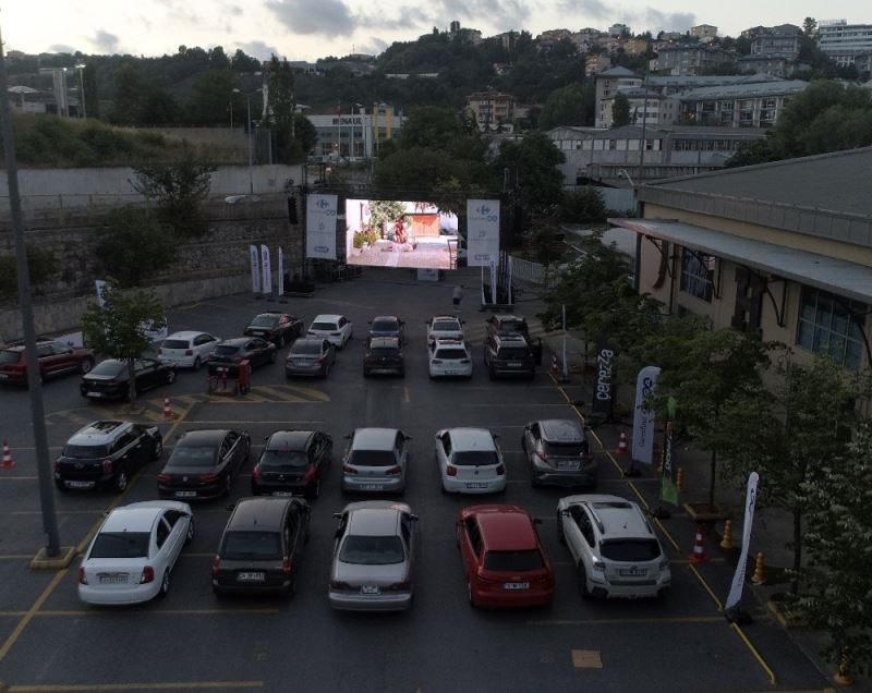 Korona virüs nedeniyle sosyal aktivitelerine ara veren vatandaşlar, CarrefourSA’nın, İstinye mağazasında düzenlediği arabalı açık hava sinemasında bu hafta “Olanlar Oldu” filmini izledi.