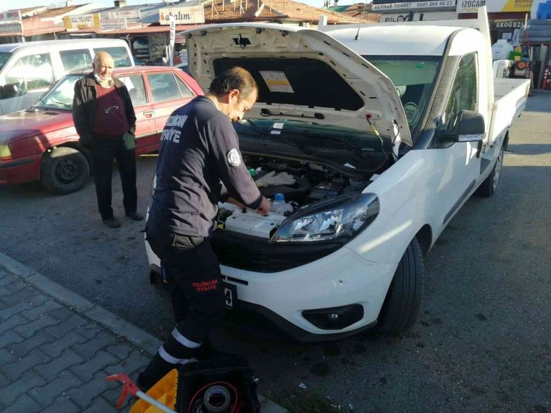 Erzincan’da bir aracın motoruna sıkışan kediyi, itfaiye ekipleri uzun çaba sonucu kurtardı.