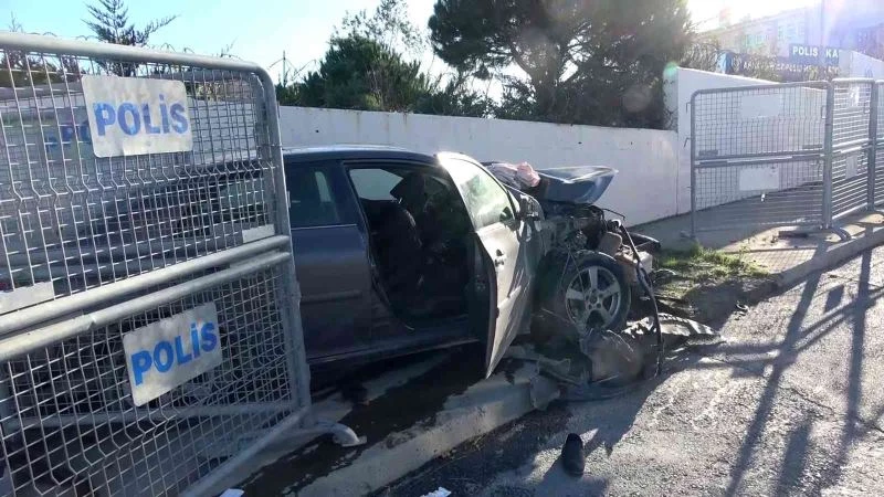 Araç sürücüsü önce hafriyat kamyonuna sonra polis okulunun duvarına çarptı
