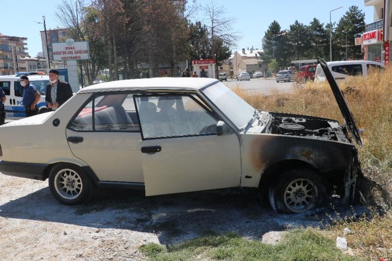 Sivas’ta 82 yaşındaki adamın yanan otomobilini çevredeki vatandaşlar söndürdü.