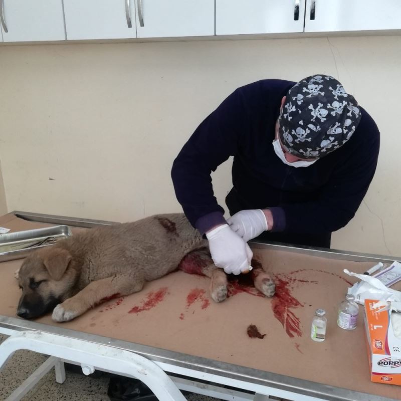 Hakkari’de aracın çarptığı yavru köpek veteriner ekipleri tarafından ilk müdahalesi yapılarak müşahede altına alındı.
