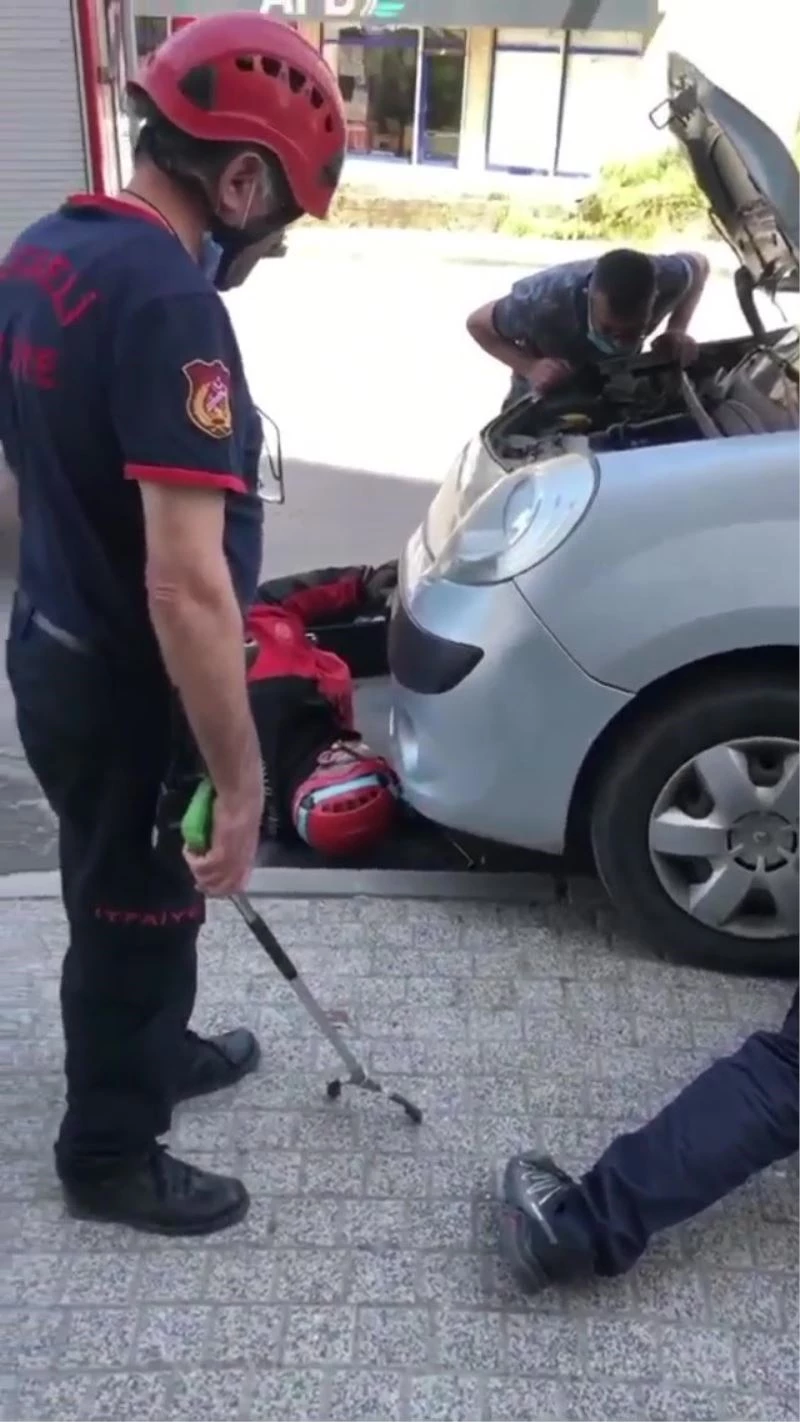 Olay, Kocaeli’nin Gebze ilçesi Tatlıkuyu Mahallesinde meydana geldi. Edinilen bilgiye göre, 55 AUN 42 plakalı otomobilin sahibi, otomobilinin içerisinden kedi sesi geldiğini fark etti. Sesin kaynağını çözemeyen vatandaşlar, durumu 112 Acil Yardım ekiplerine bildirdi. İhbar üzerine adrese itfaiye ekipleri sevk edildi. Kısa sürede otomobilin bulunduğu adrese ulaşan itfaiye ekipleri, yavru kedinin otomobilin motor kısmında sıkıştığını tespit etti. İtfaiye ekiplerince sıkıştığı yerden kurtarılan yavru kediyi kucaklayan vatandaşlar, aç kaldığını düşünerek elleriyle beslediler.