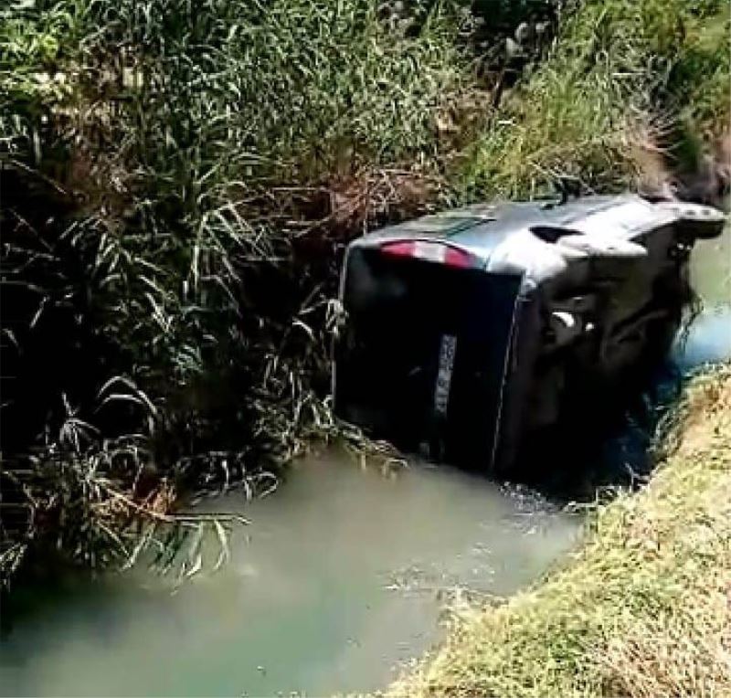 Aracına giren arı yüzünden direksiyon hakimiyetini kaybetti dereye yuvarlandı