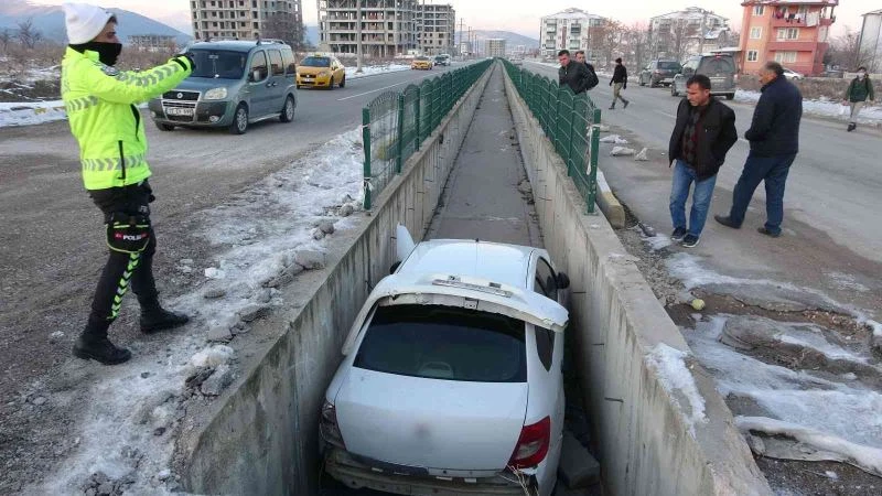 Araçla çarpışan otomobil sulama kanalına uçtu: 2 yaralı