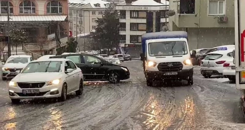 Meteoroloji Genel Müdürlüğünün ani hava değişimi ve kar yağışı uyarılarının ardından İstanbul’da beklenen kar yağışı sabahın erken saatlerinde etkili olmaya başladı. Kağıthane’de yollar kısa sürede beyaza bürünürken araçların yokuşları çıkmakta güçlük çektiği görüldü. Yollarda bazı araçların kaydıkları ve güçlükle ilerledikleri görüldü. Yokuşta kalan bir kamyonetin patinaj çektiği görülürken bir kişinin kamyonetin kasasına binerek zıpladığı ve bu şekilde kamyonun kaymasını engellemeye çalıştığı görüldü.