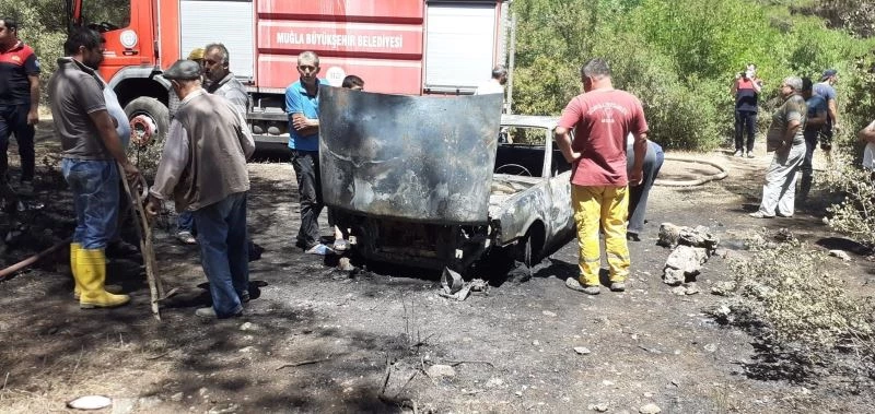 Edinilen bilgiye göre, Milas’a bağlı Karacahisar Mahallesi Hacıgiden Mevkii’nde park halinde bulunan 48 AES 198 plakalı otomobilde yangın çıktı. Kısa sürede aracı saran alevler daha sonra ormanlık alana sıçradı.