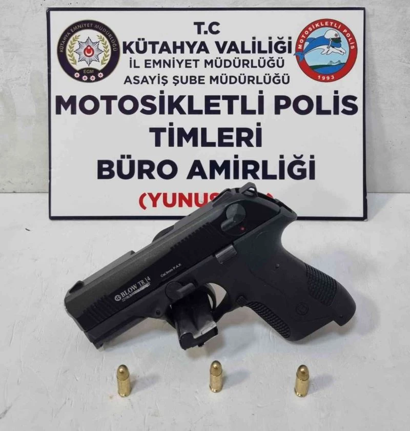 Kütahya’da Motosikletli Polis Timlerince 3 kişinin bulunduğu araçta yapılan aramada, ruhsatsız tabanca ve 3 adet fişek ele geçirildi.