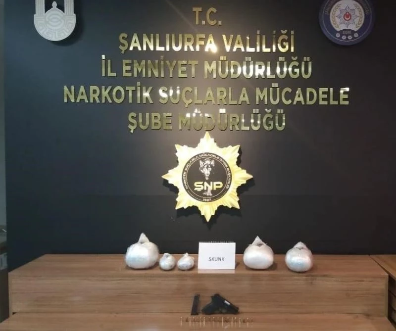 Edinilen bilgiye göre, Şanlıurfa İl Emniyet Müdürlüğü Narkotik Suçlarla Mücadele Şube Müdürlüğü ekipleri içerisinde uyuşturucu madde olduğu belirlenen bir aracı takibe aldı. Operasyonla durdurulan araçta arama yapan ekipler, 1 paket halinde 2 kilo 800 gram skunk maddesi, 1 adet silah ve 18 adet fişek ele geçirdi.