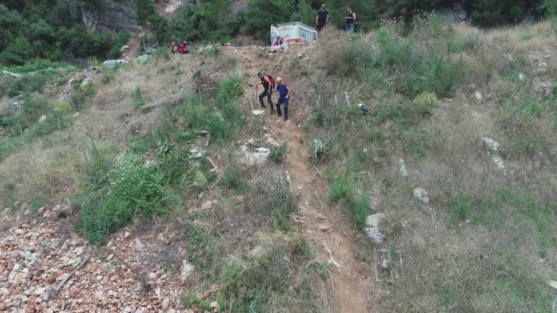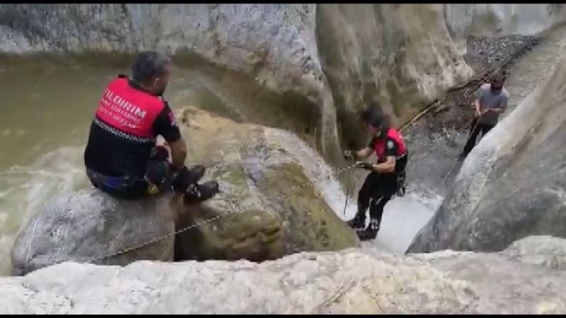 Arama ekipleri sarp kayalardan oluşan dere yatağında genç kızı böyle arıyor