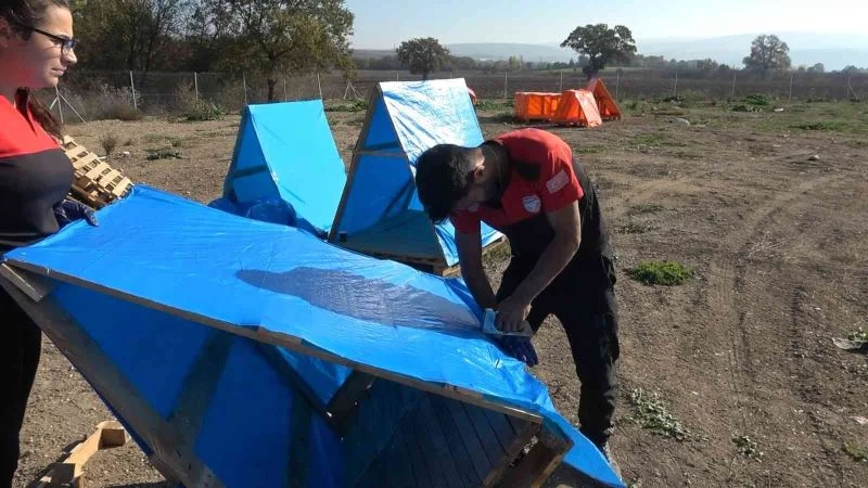 Arama kurtarma gönüllüleri sokak hayvanları için kulübe yaptı