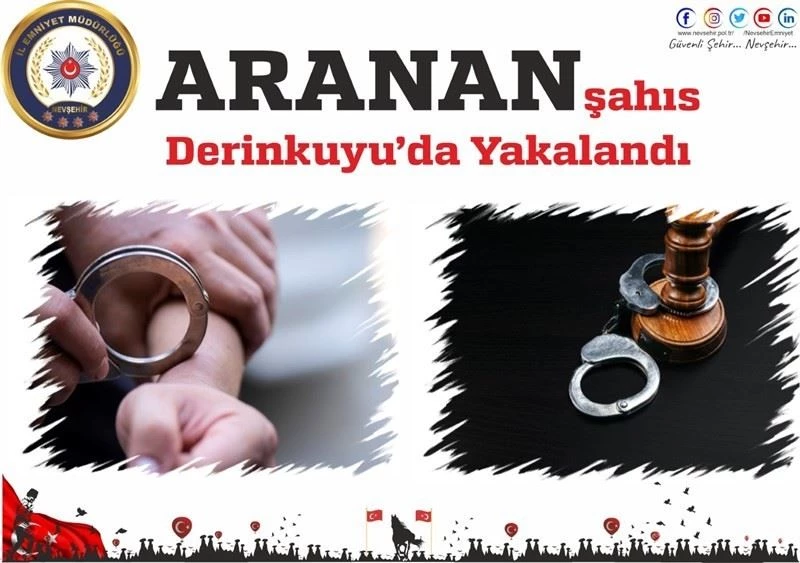 Edinilen bilgiye göre, Derinkuyu ilçesinde yol kontrolü yapan trafik ve asayiş ekipleri bir aracı durdurdu. Araçta bulunan T.K.’nın yapılan GBT sorgusunda ’tehdit’ suçundan Nevşehir İlamat ve İnfaz Bürosunca Yakalama Kararı ile arandığının tespit edildi.