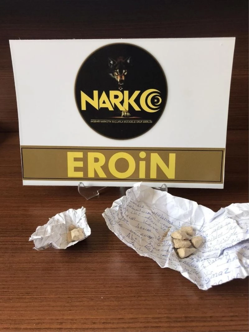 Edinilen bilgiye göre, Akşehir İlçe Emniyet Müdürlüğü Narkotik Suçlarla Mücadele Grup Amirliği ekipleri tarafından, daha önce uyuşturucu madde kullanmaktan haklarında işlem yapılan T.S., M.K. ve B.B. isimli şahıslar şüphe üzerine durdurularak üst araması yapıldı. Aramada, T.S.’nin üzerinde 6,55 gram, B.B.’nin üzerinde ise 2,20 gram olmak üzere toplam 8,75 gram eroin ele geçirildi.