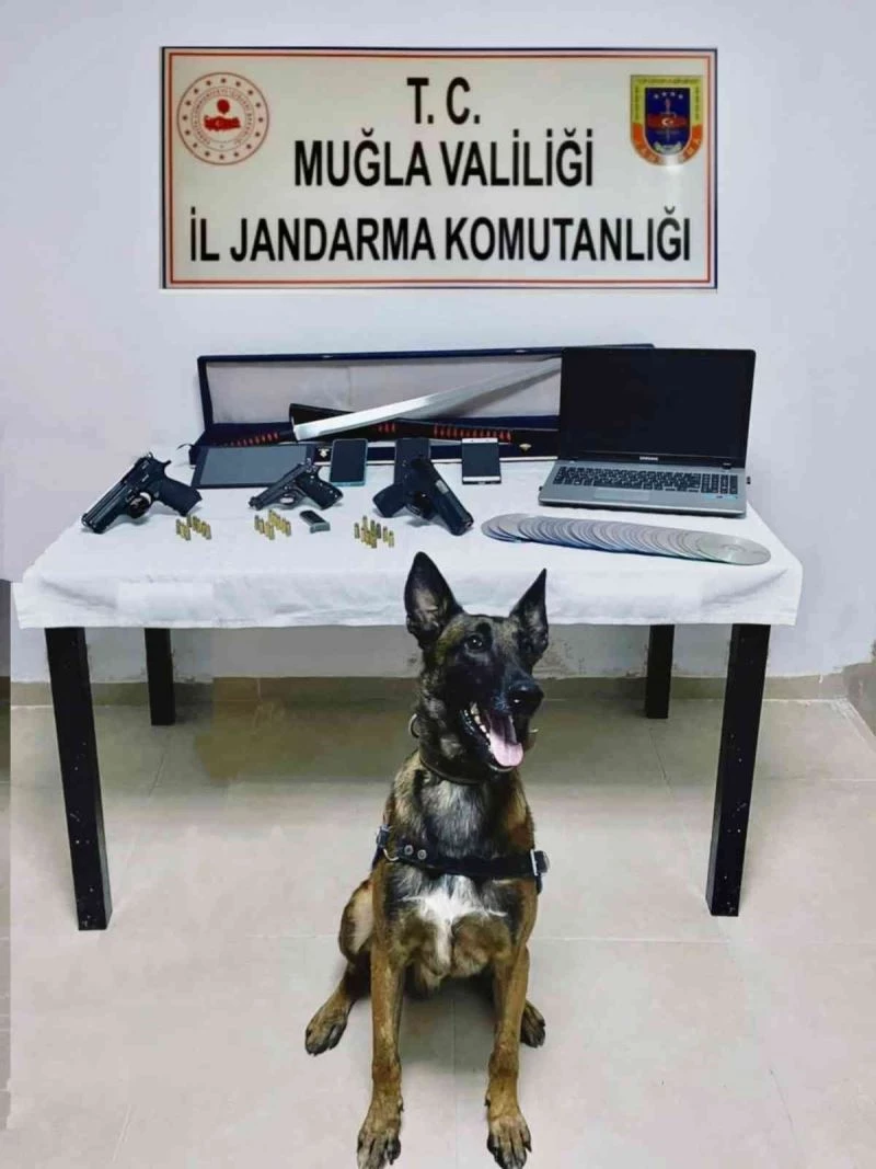 Muğla’nın Bodrum ilçesinde 6 ayrı suçtan aranması bulunan bir kişi jandarmanın operasyonuyla yakalanırken, şahsın evinden adeta cephanelik çıktı.