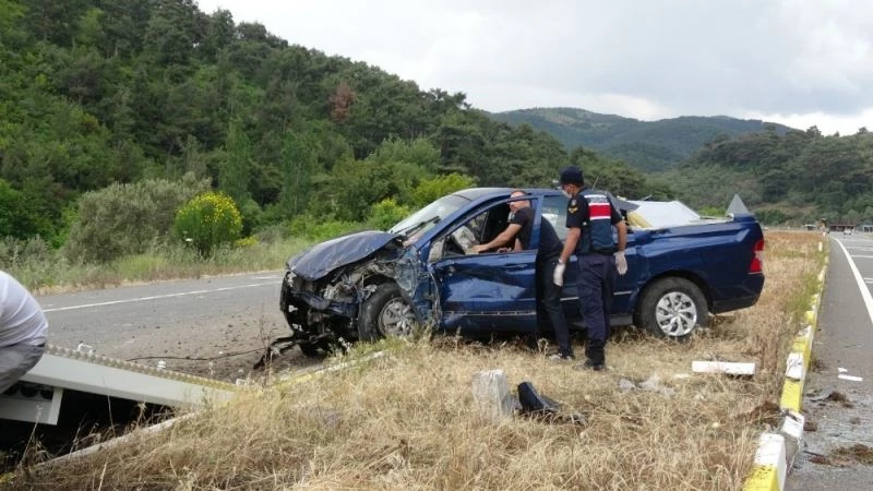 Balıkesir’in Havran ilçesince yağmur sebebiyle kayganlaşan yolda refüje çarparak takla atan arazi aracındaki 2 kişi yaralandı.