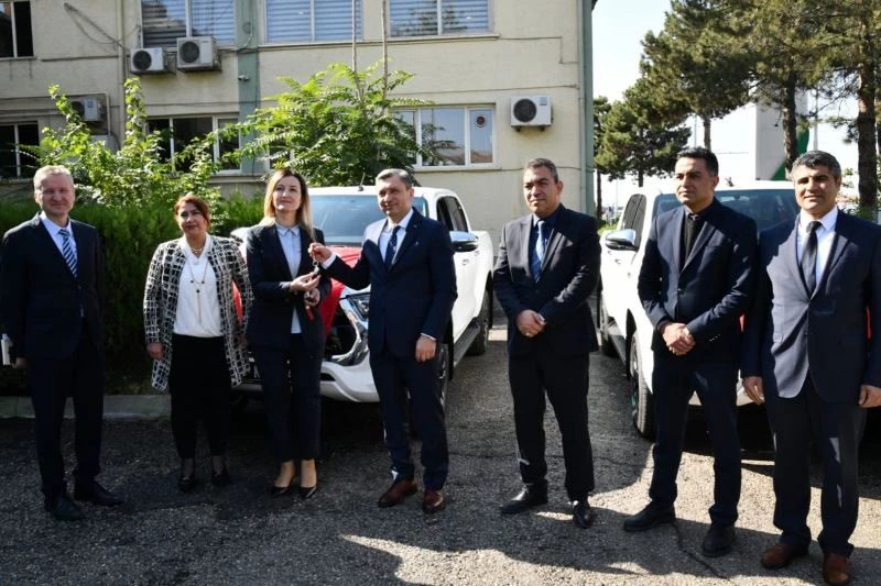 Devlet Malzeme Ofisi kanalıyla satın alınan ve YİKOB’un yatırım faaliyetleri, doğal kaynaklar, maden ruhsat kontrol ve denetleme görevlerinde kullanılmak üzere tahsis edilen 2 adet arazi aracının anahtarlarını Vali Hulusi Hulusi Şahin, YİKOB yetkililerine teslim etti.
