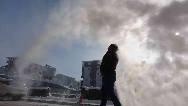 Ardahan’da havaya serpilen sıcak su, yere buz taneciği olarak düştü.