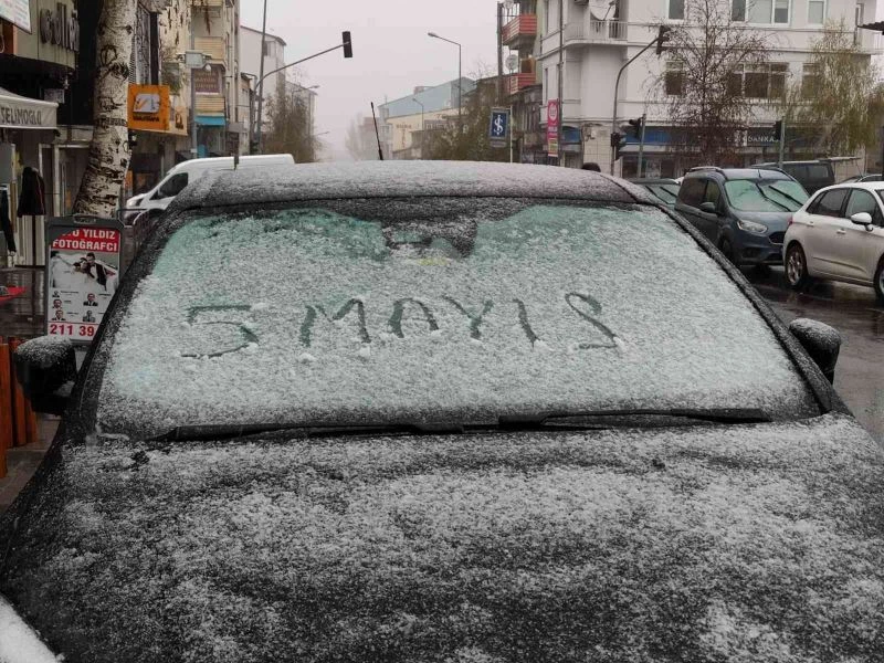 Ardahan’da mayıs ayında etkili olan kar yağışı kenti beyaza bürüdü.