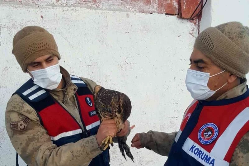 Ardahan’da jandarma tarafından Çamlıçatak köyü kırsalında bulunan ve soğuktan donmak üzere olduğu belirtilen çakır kuşu korumaya alındı.