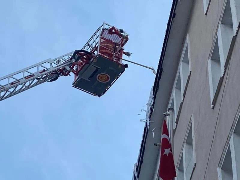 Ardahan’da itfaiye ekipleri, çatılarda oluşan buz sarkıtlarını kırarak olası kazaları engelliyor.