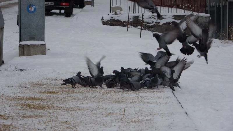 Ardahan’da kar yağışının ardından dondurucu soğuklar etkisini sürdürürken, olumsuz hava şartları nedeniyle yem bulamayan güvercinleri vatandaşlar besliyor.