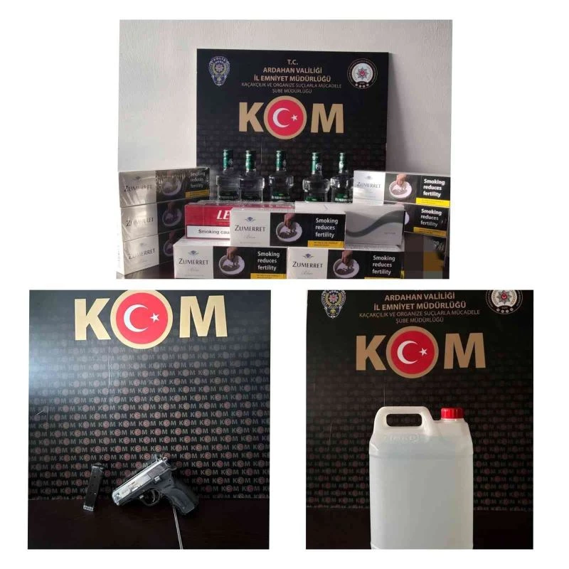 Ardahan İl Emniyet Müdürlüğü Kaçakçılık ve Organize Suçlarla Mücadele Şubesi ekipleri, kentte kaçakçılık ile mücadele çalışmaları çerçevesinde yol kontrolü ve üst araması yaptı. Uygulamada 5 şüphelinin üstünde kaçak içki, 190 paket kaçak sigara ile ruhsatsız tabancı ele geçirildi. 2’si Gürcistan uyruklu 5 zanlıya "Kaçakçılık" suçundan işlem yapıldı.