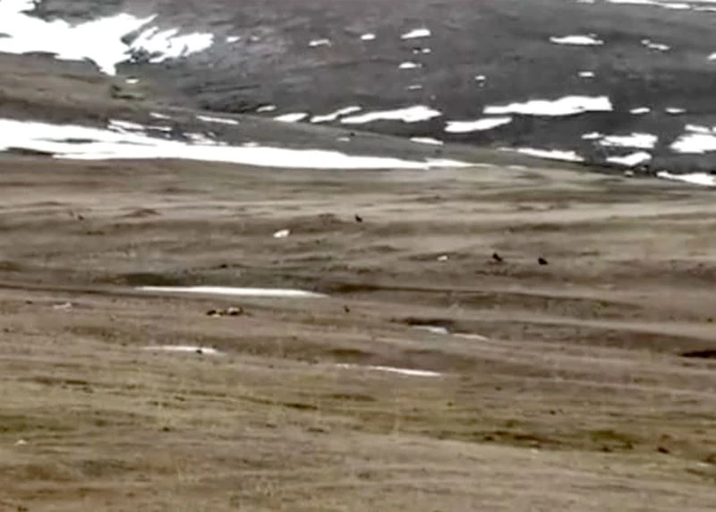 Leşlerle beslendiği için doğanın çöpçüsü olarak bilinen, nesli tehdit altında olan akbabalar, Ardahan’da görüntülendi.
