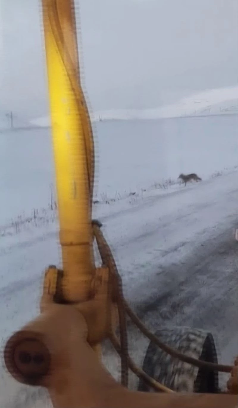 Ardahan’da karla mücadele ekipleri karayoluna inen kurt sürüsünü görüntüledi.