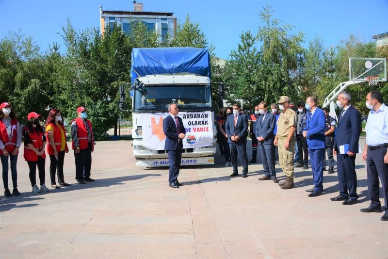 Valilik koordinesinde İl Afet ve Acil Durum (AFAD) Müdürlüğünce "Ben de Varım" sloganıyla başlatılan kampanya kapsamında kamu kurumları, sivil toplum kuruluşları ve hayırseverlerin desteğiyle toplanan gıda ve ihtiyaç malzemeleri araçlara yüklendi. Valilik bahçesine getirilen yardım malzemeleri, Ardahan Valisi Hüseyin Öner, İl Jandarma Komutanı Ali Naci Aldemir, İl Emniyet Müdür Vekili Osman Sezen, AFAD Müdürü Mehmet Nuri Değişman, Kızılay Başkanı Ahmet Ballı ve diğer ilgililerin katılımıyla sel bölgesine uğurlandı.