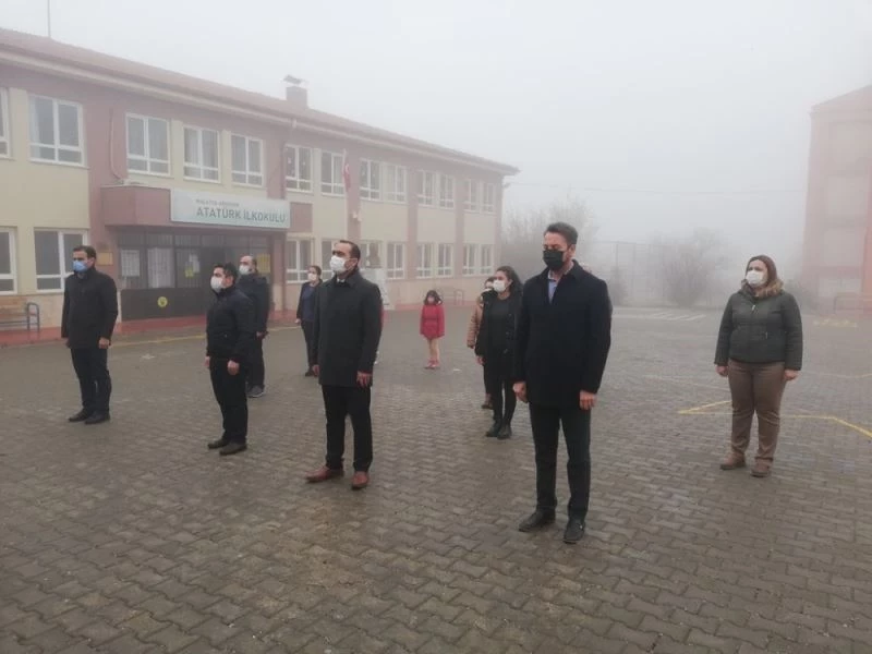 Covid-19 pandemi sürecinde okulların kapalı olmasından dolayı bayrak törenini özleyen Malatya’nın Arguvan ilçesindeki İmam Hatip Ortaokulu ile Atatürk İlkokulu idareci ve öğretmenleri bayrak töreninde bir araya geldi.