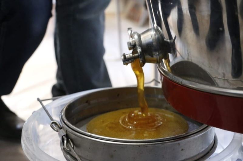 Kayseri’nin Yeşilhisar İlçesinde geniş ve zengin bitki örtüsüne sahip arazide arıcılık yapan arıcılar, bal hasadına başladı. Arıları ile birlikte arazide yılın büyük bir bölümünü geçiren Yeşilhisarlı arıcılar, sıcak havaların etkisini sürdürdüğü günlerde çalışmalarını artırdı. Korona virüs tedbirleri kapsamında önlemlerini alan arıcılar, arıları kovanlardan uzaklaştırmak için duman çıkaran körük yardımıyla kovanlardaki bal peteklerini çıkarmaya başladı. Taşıdıkları bal peteklerini burada bal süzme makinesinden geçiren arıcılar, süzdükleri balları tenekeler ve şişelerde paketleyip Türkiye’nin dört bir yanına gönderiyor. Bal hasadına Yeşilhisar Kaymakamı Fatih Bayram,Yeşilhisar Belediye Başkanı Halit Taşyapan, İlçe Jandarma Komutanı Nihat Boylu ve İlçe Tarım ve Orman Müdürü Salih Bektaş katıldı. Arıcılara hayırlı ve bol kazançlar dileyen Yeşilhisar Kaymakamı Fatih Bayram, yapılan çalışmaları inceledi.