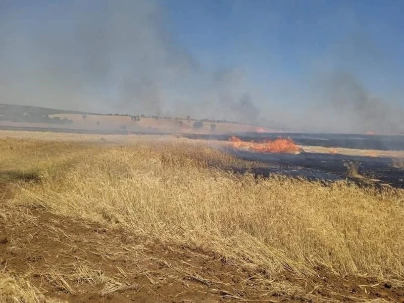 Arızalanan biçerdöverden çıkan yangında 140 dekar buğday ekili alan kül oldu