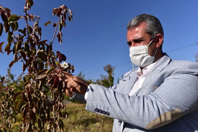 Bitlis’in Ahlat ilçesinde armut ağacı ekim ayında çiçek açıp ikinci defa meyve verdi.