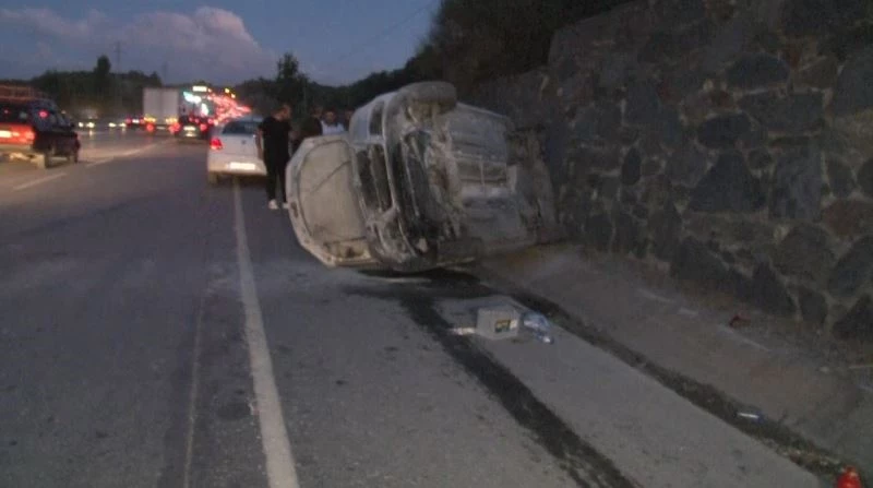 Arnavutköy-Sultangazi yolunda direksiyon hakimiyetinin kaybedildiği bir otomobil yan yattı. Yan yatan otomobilde bulunan 2 kişi yara almadan kurtulurken, yolda uzun araç kuyrukları oluştu.