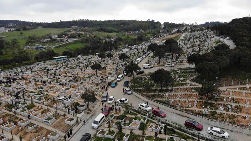 İstanbul’da bayrama bir gün kala çarşı ve pazarlardaki yoğunluğun yanı sıra mezarlıklarda da yoğunluk yaşandı. Çok sayıda vatandaş yakınlarının kabrini ziyaret etmek üzere Arnavutköy Asri Mezarlığı’na geldi. Vatandaşlar, mezarlığa çıkan yollarda uzun araç kuyrukları oluşturdu. Bayram öncesi mezarlıkların bakımlarını yapan, dua eden vatandaşların yoğunluğu dron ile görüntülendi.