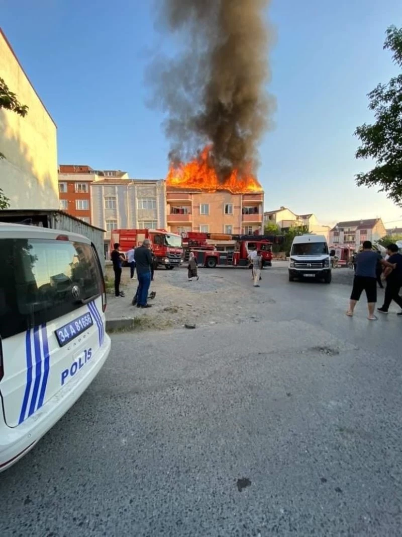 Arnavutköy’de binanın çatı katı alevlere teslim oldu